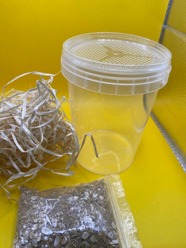 Deze set word geleverd in een potje met een voedingsbodemen en houtkrullen. Deze bodem voedt de larven, zodat ze zich goed ontwikkelen tot sterke, actieve vliegjes. De vliegjes komen na ongeveer een week uit hun cocon, afhankelijk van de temperatuur. De ideale omgevingstemperatuur ligt tussen de 18 en 24 °C hoe warmer, hoe sneller de levenscyclus verloopt.